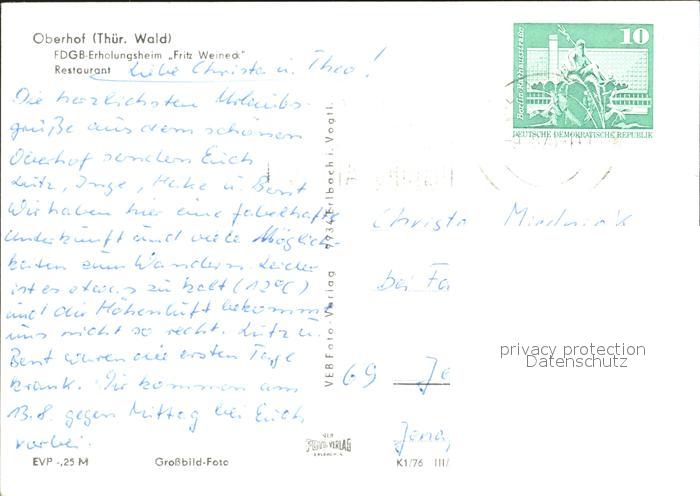 72094721 alte Postkarte Oberhof Thueringen FDGB Erholungsheim Fritz Weineck Restaurant postalisch gelaufen Erhaltung siehe scans KatCode: 11110016066047