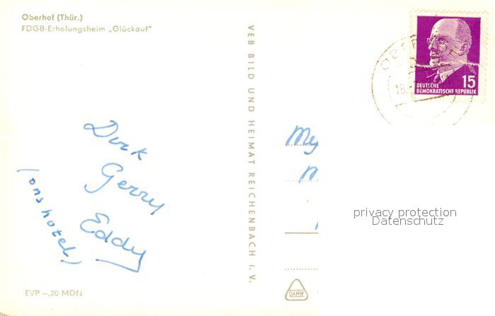 73031127 alte Postkarte Oberhof Thueringen FDGB Erholungsheim Glueckauf postalisch gelaufen Erhaltung siehe scans [KathaD81] KatCode: 11110016066047
