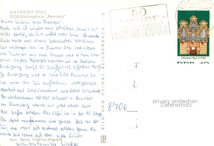 73680399 alte Postkarte Oberhof Thueringen FDGB Erholungsheim Rennsteig postalisch gelaufen Erhaltung siehe scans [FriedD77] KatCode: 11110016066047