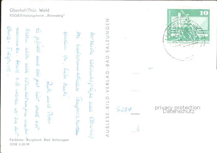 72557305 alte Postkarte Oberhof Thueringen FDGB Erholungsheim Rennsteig postalisch gelaufen Erhaltung siehe scans [KathaD79] KatCode: 11110016066047