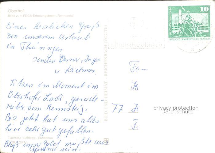 72382692 alte Postkarte Oberhof Thueringen FDGB Erholungsheim Rennsteig postalisch gelaufen Erhaltung siehe scans KatCode: 11110016066047