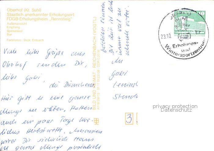 71946836 alte Postkarte Oberhof Thueringen FDGB Erholungsheim Rennsteig postalisch gelaufen KatCode: 11110016066047