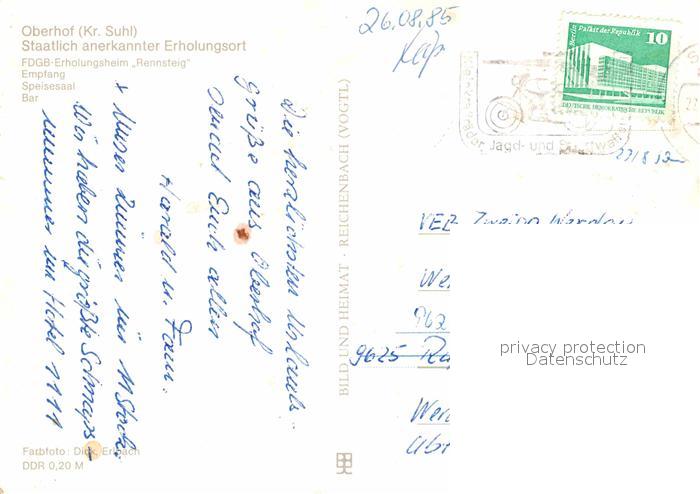 72726450 alte Postkarte Oberhof Thueringen FDGB Erholungsheim Rennsteig Empfang Speisesaal Bar postalisch gelaufen Erhaltung siehe scans [FriedD77] KatCode: 11110016066047