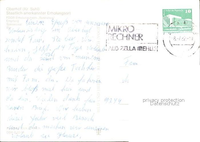 71866390 alte Postkarte Oberhof Thueringen FDGB-Erholungsheim Rennsteig Empfang Speisesaal Bar postalisch gelaufen Erhaltung siehe scans KatCode: 11110016066047