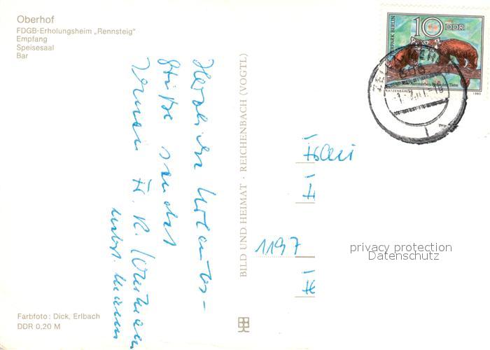 73152670 alte Postkarte Oberhof Thueringen FDGb Erholungsheim Rennsteig Empfang Speisesaal Bar postalisch gelaufen Erhaltung siehe scans [FriedD77] KatCode: 11110016066047