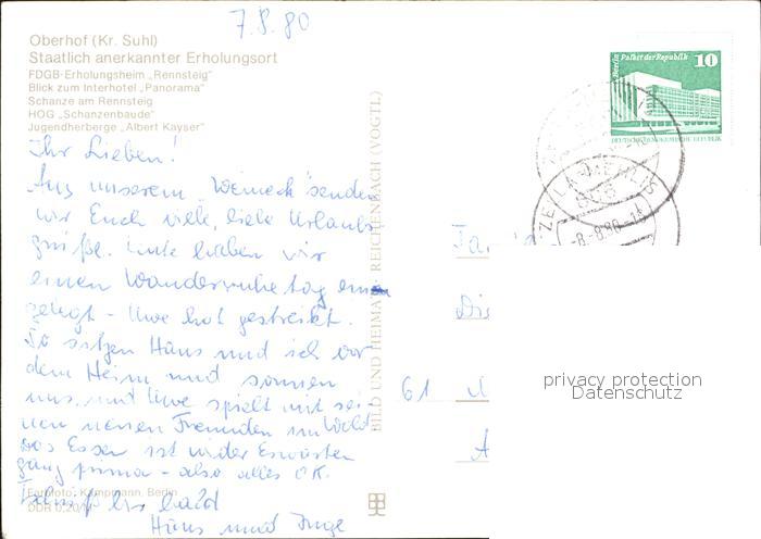 72458765 alte Postkarte Oberhof Thueringen FDGB Erholungsheim Rennsteig Interhotel Panorama Schanze HOG Schanzenbaude Jugendherberge postalisch gelaufen Erhaltung siehe scans KatCode: 11110016066047