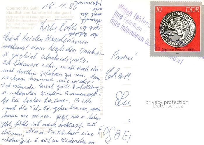 73042434 alte Postkarte Oberhof Thueringen FDGB Erholungsheime Interhotel Panorama Rennsteiggarten postalisch gelaufen Erhaltung siehe scans [FriedD77] KatCode: 11110016066047