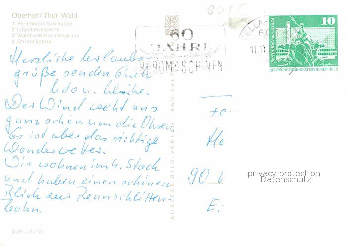 72774999 alte Postkarte Oberhof Thueringen Ferienheim Schmuecke Luetschetalsperre Waldhotel Kanzlersgrund postalisch gelaufen Erhaltung siehe scans [NatalD47] KatCode: 11110016066047