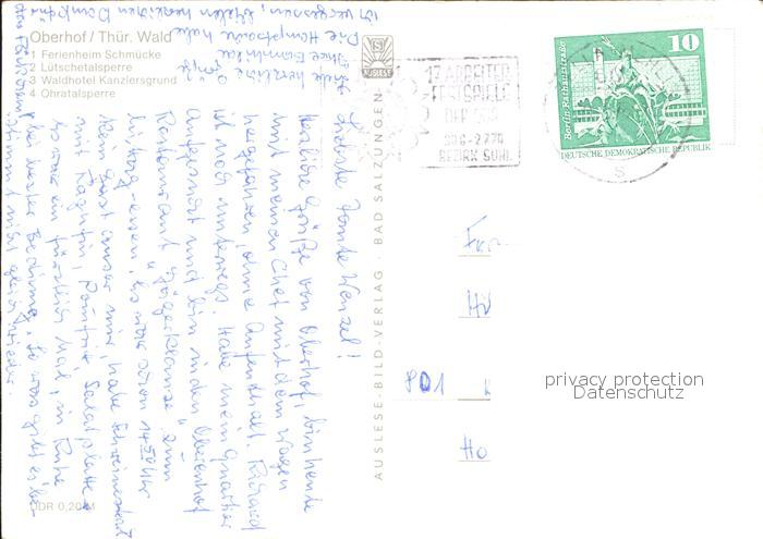 72353797 alte Postkarte Oberhof Thueringen Ferienzentrum Schmuecke Luetschetalspere Waldhotel Kanzlersgrund Ohratalsperre postalisch gelaufen Erhaltung siehe scans KatCode: 11110016066047