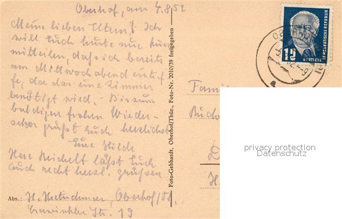 72982635 alte Postkarte Oberhof Thueringen Fliegeraufnahme postalisch gelaufen Erhaltung siehe scans [FriedD77] KatCode: 11110016066047