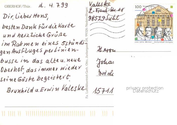 72684844 alte Postkarte Oberhof Thueringen Fliegeraufnahme postalisch gelaufen Erhaltung siehe scans [NatalD47] KatCode: 11110016066047