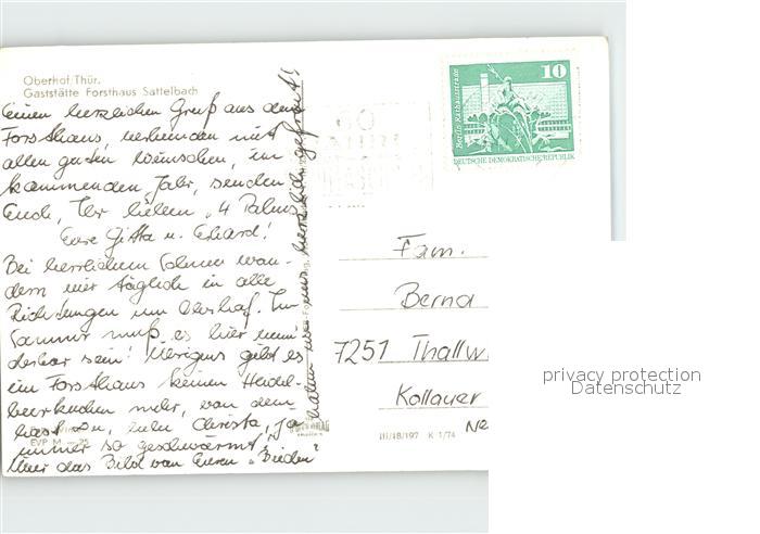 71983889 alte Postkarte Oberhof Thueringen Gaststaette Forsthaus Sattelbach postalisch gelaufen Erhaltung siehe scans KatCode: 11110016066047