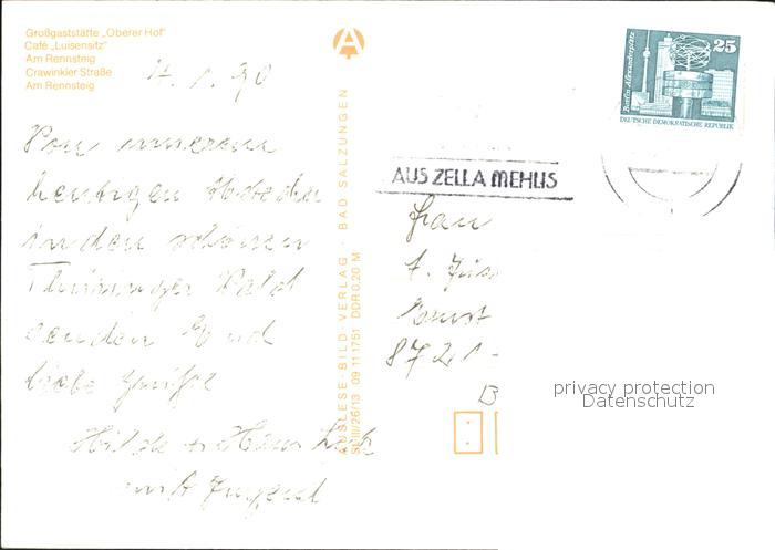 72257746 alte Postkarte Oberhof Thueringen Gaststaette Oberer Hof Cafe Luisensitz Rennsteig Crawinkler Strasse postalisch gelaufen Erhaltung siehe scans KatCode: 11110016066047