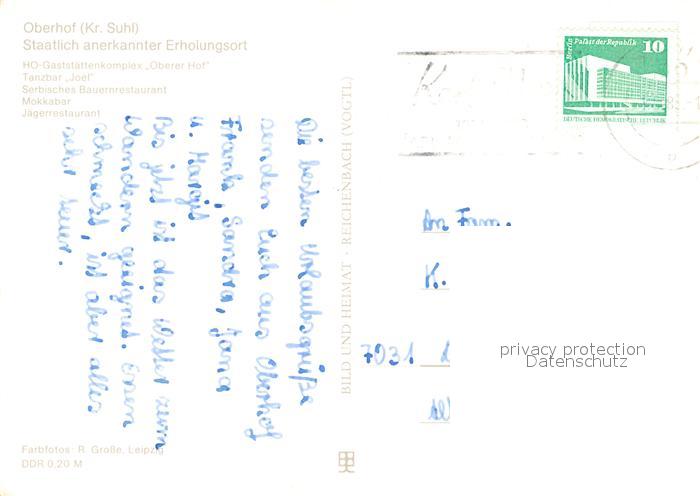 73570272 alte Postkarte Oberhof Thueringen Gastst?ttenkomplex Oberer Hof postalisch gelaufen Erhaltung siehe scans [PaolaD17] KatCode: 11110016066047