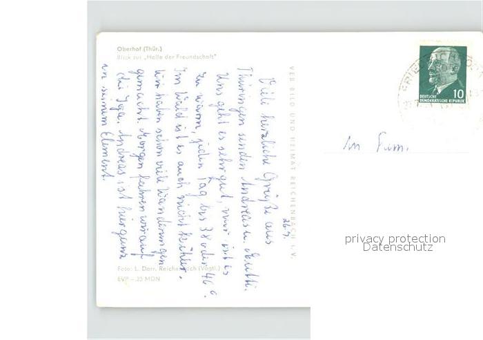 71963416 alte Postkarte Oberhof Thueringen Halle der Freundschaft postalisch gelaufen Erhaltung siehe scans KatCode: 11110016066047
