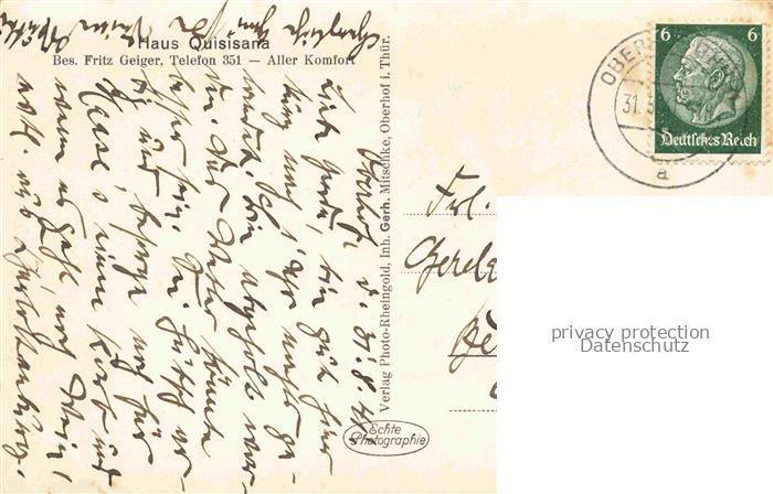 74025271 alte Postkarte Oberhof Thueringen Haus Quisisana postalisch gelaufen Erhaltung siehe scans [WerneD78] KatCode: 11110016066047