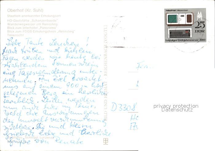 72132918 alte Postkarte Oberhof Thueringen HO Gaststaette Schanzenbaute Interhotel Panorama Rennsteig postalisch gelaufen Erhaltung siehe scans KatCode: 11110016066047