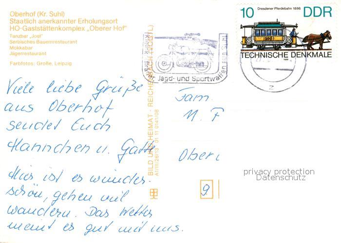 73166468 alte Postkarte Oberhof Thueringen HO Gaststaettenkomplex Oberer Hof Tanzbar Bauernrestaurant Mokkabar Jaegerrestaurant postalisch gelaufen Erhaltung siehe scans [FriedD77] KatCode: 11110016066047