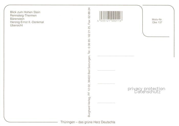 73226945 Oberhof Thueringen Hoher-Stein Rennsteig-Thermen Baerenstein Herzog-Ernst-Denkmal postalisch nicht gelaufen Erhaltung siehe scans [LiesaD40] KatCode: 11110016066047