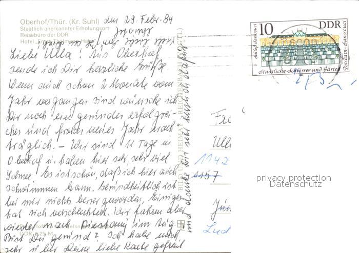 alte Postkarte Oberhof Thueringen Hotel Ernst Thaelmann Haus postalisch gelaufen Erhaltung siehe scans