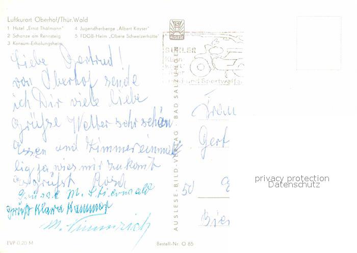 72742980 Oberhof Thueringen Hotel-Ernst-Thaelmann Schanze-am-Rennsteig Jugendherberge-Albert-Kayser postalisch nicht gelaufen Erhaltung siehe scans [LiesaD40] KatCode: 11110016066047