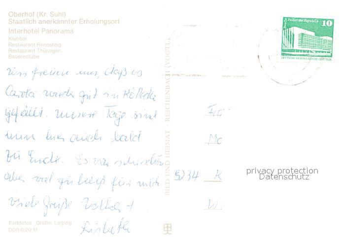 72942501 alte Postkarte Oberhof Thueringen Interhotel Panorama postalisch gelaufen Erhaltung siehe scans [LiesaD40] KatCode: 11110016066047