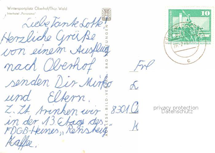 72631278 alte Postkarte Oberhof Thueringen Interhotel Panorama postalisch gelaufen Erhaltung siehe scans [LiesaD40] KatCode: 11110016066047