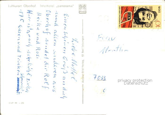 72443357 alte Postkarte Oberhof Thueringen Interhotel Panorama postalisch gelaufen Erhaltung siehe scans KatCode: 11110016066047