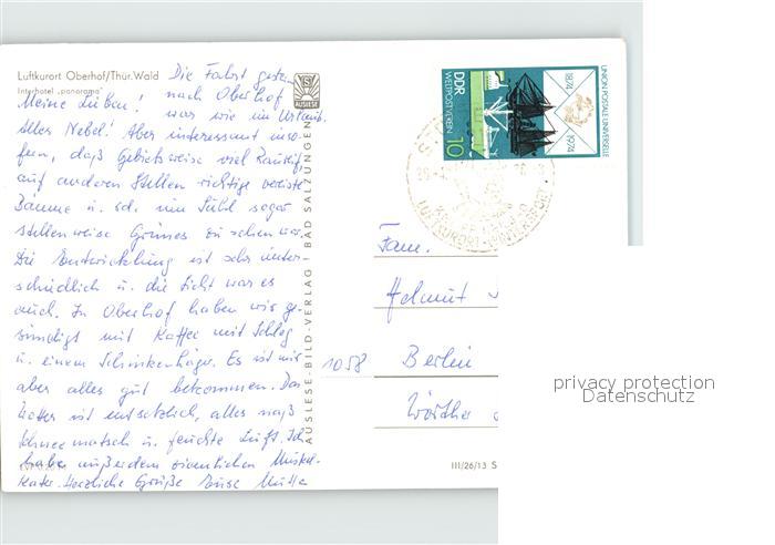 72391525 alte Postkarte Oberhof Thueringen Interhotel Panorama postalisch gelaufen Erhaltung siehe scans KatCode: 11110016066047