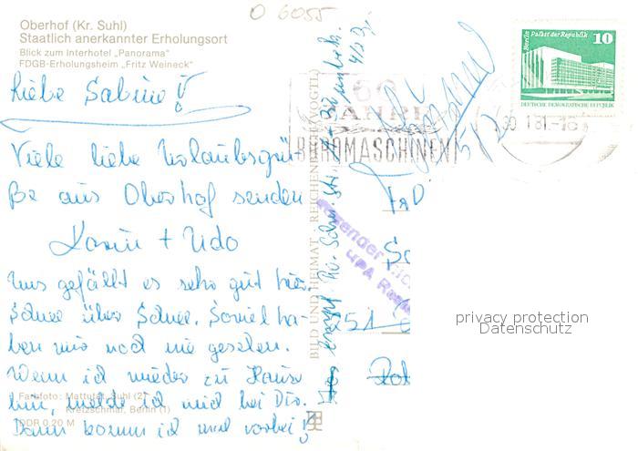 73042435 alte Postkarte Oberhof Thueringen Interhotel Panorama FDGB Erholungsheim Fritz Weineck Winterpanorama postalisch gelaufen Erhaltung siehe scans [FriedD77] KatCode: 11110016066047