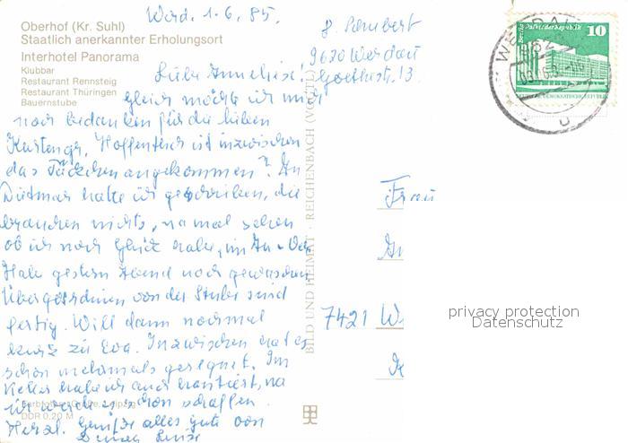 72773734 alte Postkarte Oberhof Thueringen Interhotel Panorama Klubbar Restaurant Bauernstube postalisch gelaufen Erhaltung siehe scans [AndreD76] KatCode: 11110016066047