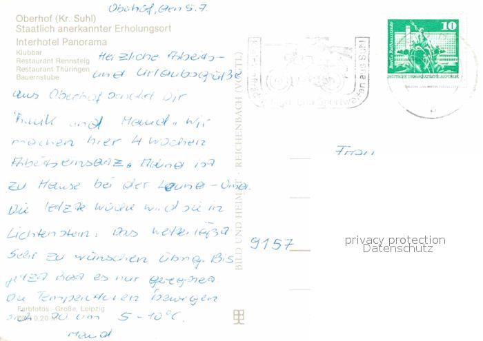 72683638 alte Postkarte Oberhof Thueringen Interhotel Panorama Klubbar Restaurants Bauernstube postalisch gelaufen Erhaltung siehe scans [LiesaD40] KatCode: 11110016066047