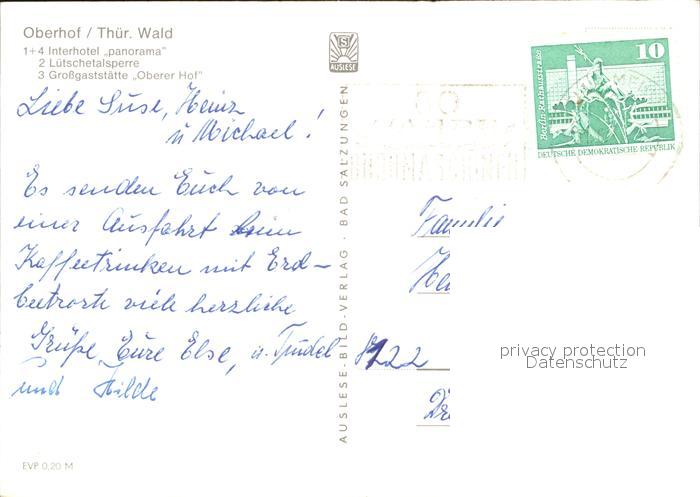 72373275 alte Postkarte Oberhof Thueringen Interhotel Panorama Luetschetalsperre Grossgaststaette Oberer Hof postalisch gelaufen Erhaltung siehe scans KatCode: 11110016066047