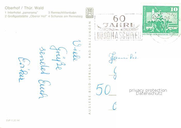 72742975 alte Postkarte Oberhof Thueringen Interhotel Panorama Rennschlittenbahn Restaurant Oberer Hof Schanze-am-Rennsteig postalisch gelaufen Erhaltung siehe scans [LiesaD40] KatCode: 11110016066047