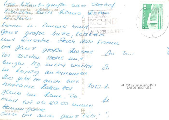 72972814 alte Postkarte Oberhof Thueringen Jugendherberge Edgar Andre Platz des Friedens Interhotel Panorama postalisch gelaufen Erhaltung siehe scans [FriedD77] KatCode: 11110016066047
