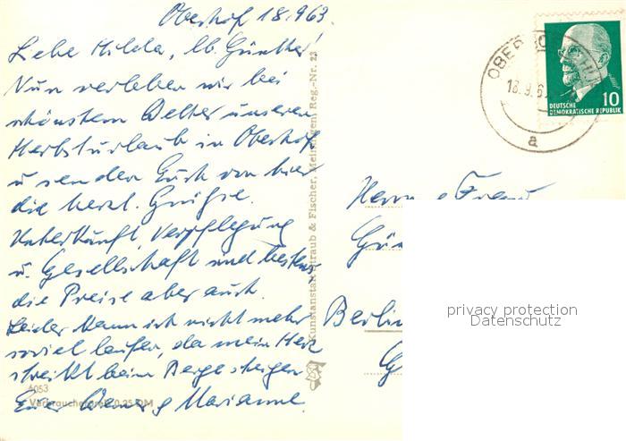 73050593 alte Postkarte Oberhof Thueringen Jugendherberge Edgar und Andre Albert Kayser postalisch gelaufen Erhaltung siehe scans [PaolaD17] KatCode: 11110016066047