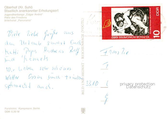 73128883 alte Postkarte Oberhof Thueringen Jugendherberge Interhotel Panorama postalisch gelaufen Erhaltung siehe scans [KathaD81] KatCode: 11110016066047