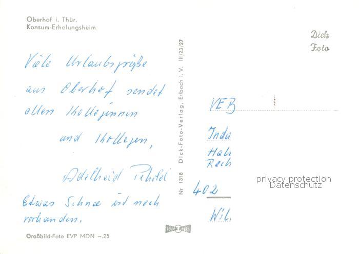 72920416 Oberhof Thueringen Konsum Erholungsheim postalisch nicht gelaufen Erhaltung siehe scans [LiesaD40] KatCode: 11110016066047