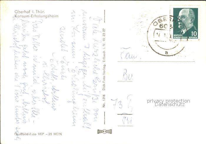 71989740 alte Postkarte Oberhof Thueringen Konsum Erholunsgheim postalisch gelaufen Erhaltung siehe scans KatCode: 11110016066047