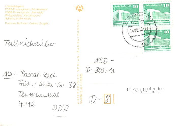 73091593 alte Postkarte Oberhof Thueringen Luetschetalsperre FDGB Erholungsheim Fritz Weineck Rennsteig Schanze postalisch gelaufen Erhaltung siehe scans [KathaD81] KatCode: 11110016066047