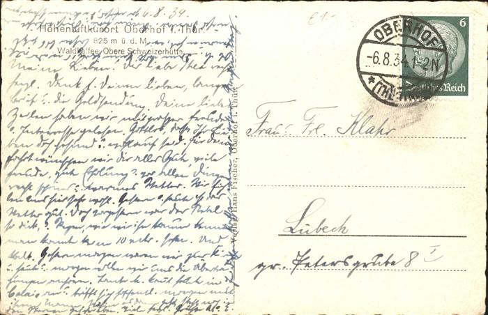 71465052 alte Postkarte Oberhof Thueringen Obere Schweizerhuette postalisch gelaufen Erhaltung siehe scans KatCode: 11110016066047