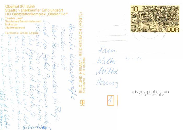 72872664 alte Postkarte Oberhof Thueringen Oberer Hof Tanzbar Mokkabar Jaegerrestaurant postalisch gelaufen Erhaltung siehe scans [LiesaD40] KatCode: 11110016066047