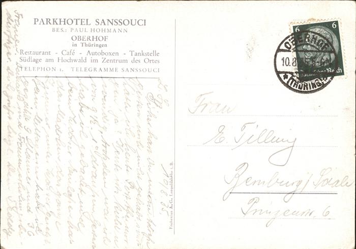 41269468 alte Postkarte Oberhof Thueringen Parkhotel Sanssouci postalisch gelaufen gute Erhaltung KatCode: 11110016066047