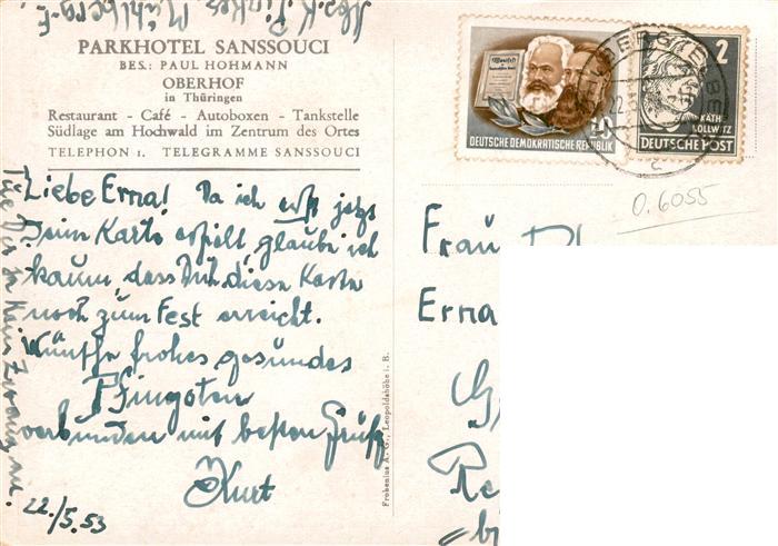 73868770 Oberhof Thueringen Parkhotel Sanssouci Kuenstlerkarte postalisch gelaufen Erhaltung siehe scans [FriedD77] alte Postkarte Frie Katcode 11110016066047