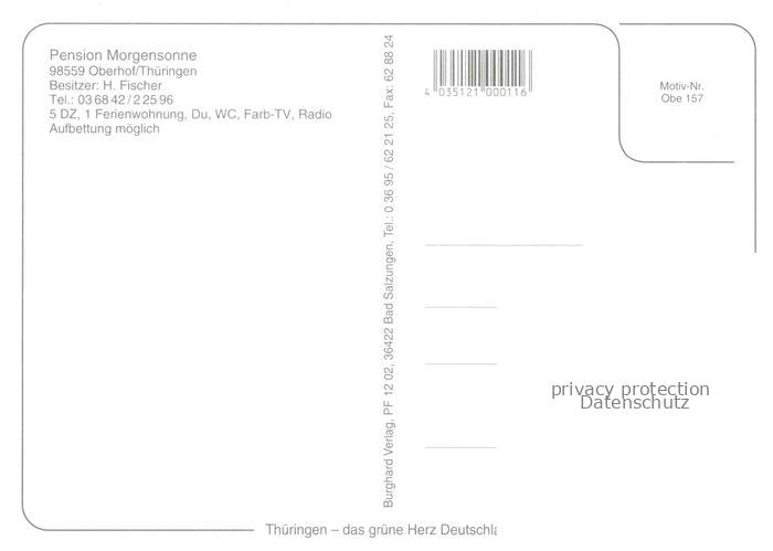 74029251 Oberhof Thueringen Pension Morgensonne postalisch nicht gelaufen Erhaltung siehe scans [FriedD77] KatCode: 11110016066047