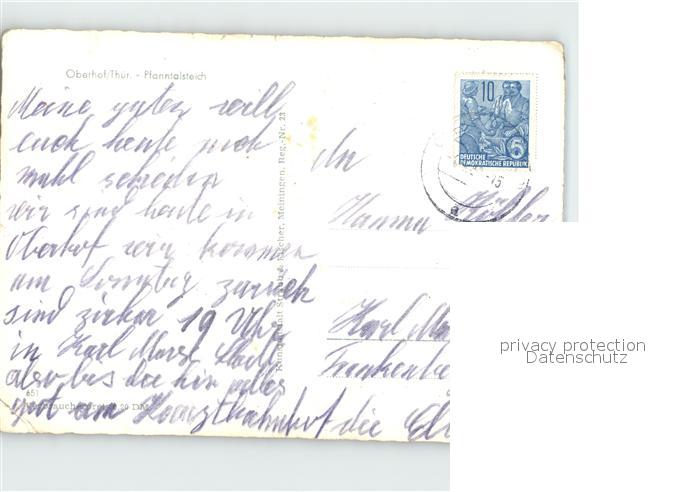 72384053 alte Postkarte Oberhof Thueringen Pfanntalsteich postalisch gelaufen Erhaltung siehe scans KatCode: 11110016066047