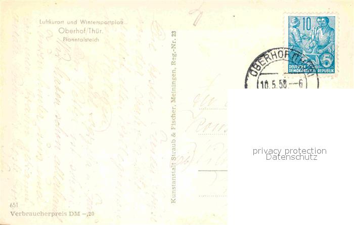 72699585 alte Postkarte Oberhof Thueringen Pfanntalsteich postalisch gelaufen Erhaltung siehe scans [LiesaD40] KatCode: 11110016066047