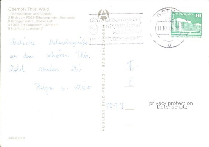 72406192 alte Postkarte Oberhof Thueringen Rennschlitten Bobbahn FDGB Erholungsheim Grossgaststaette Oberer Hof Interhotel Panorama postalisch gelaufen Erhaltung siehe scans KatCode: 11110016066047