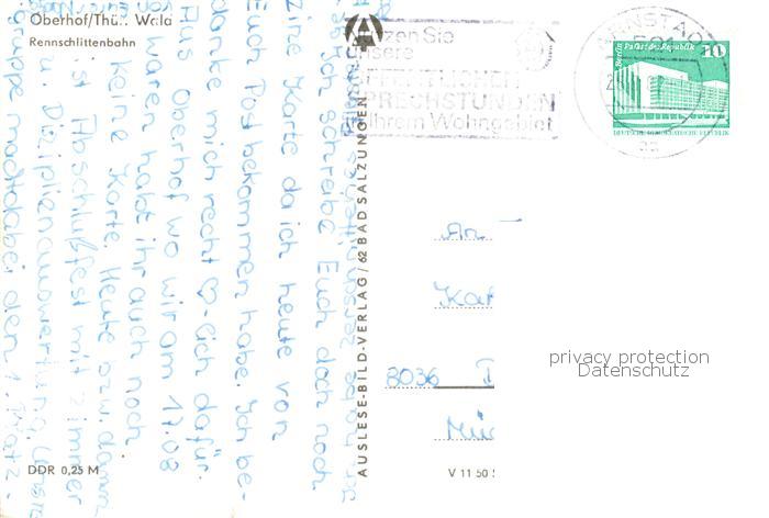 73868649 Oberhof Thueringen Rennschlittenbahn postalisch gelaufen Erhaltung siehe scans [WerneD78] alte Postkarte Wern Katcode 11110016066047