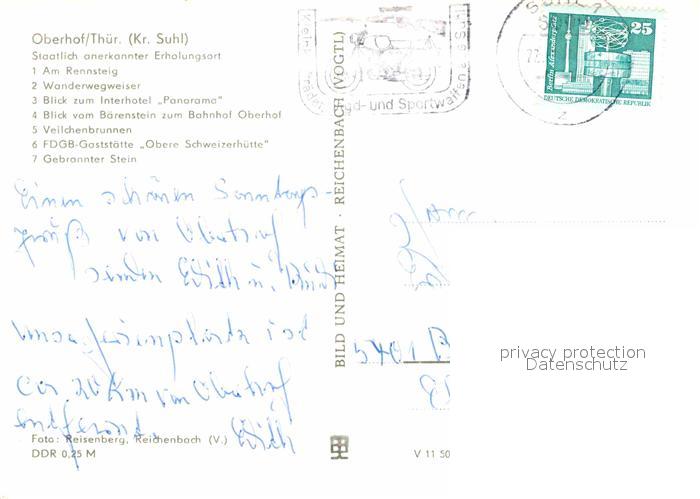 72859731 alte Postkarte Oberhof Thueringen Rennsteig Wanderwegweiser Interhotel Panorama postalisch gelaufen Erhaltung siehe scans [NatalD47] KatCode: 11110016066047